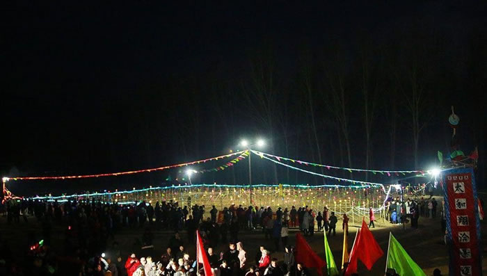 九曲黃河陣燈俗 九曲黃河陣燈俗俗稱“燈場子”,流傳于太師屯鎮(zhèn)東田各莊村。 明代洪武四年(1371),山西移民將“燈場子”傳入東田各莊,傳承至今,已有六百多年的歷史。 村中劉繼華老人保存的九曲黃河陣燈會圖譜已有百年歷史,圖中陣式按周易九宮八卦方位,以富貴不斷頭的傳統(tǒng)圖案九曲而成。陣內(nèi)乾、坎、艮、震、巽、離、坤、兌八宮加上中宮共有九宮,系模擬古代戰(zhàn)陣而成。 每年春節(jié)期間,東田各莊農(nóng)歷正月初十開始扎燈,正月十四、十五、十六三天正式舉行燈會,正月十七后撤燈。燈會期間,人們從四面八方趕來觀燈賞會,走燈陣,看大戲。走進(jìn)燈陣入口以后,如能順利地通過連環(huán)陣,再從出口返回,就意味著一年順順當(dāng)當(dāng)、平平安安,故當(dāng)?shù)赜?ldquo;順著燈陣走,能活九十九”的說法。 東田各莊九曲黃河陣燈俗有兩個主要特點(diǎn),一是燈場與花會相結(jié)合,二是燈會與戲曲表演相結(jié)合。九曲黃河陣燈會帶有某種智能游戲的性質(zhì),燈陣及其外延的燈會包含著豐富的文化內(nèi)涵,具有較高的歷史文化研究價值。 2008年6月7日,九曲黃河陣燈俗被國務(wù)院公布為第二批國家級非物質(zhì)文化遺產(chǎn)名錄。 風(fēng)景名勝