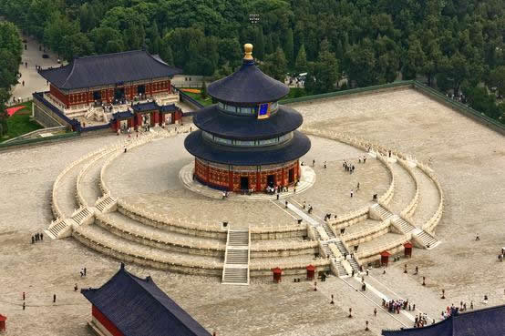 天壇公園由兩道壇墻環(huán)繞,被分為“內(nèi)壇”“外壇”兩部分;域北呈圓形,南為方形,寓意“天圓地方”;主要由春季祈禱豐年的“祈谷壇”,冬至日祭天的“圜丘壇”,皇帝祭祀前居住的齋宮、演習祭祀禮樂的神樂署四大古建筑群組成;祈谷壇中的祈年殿是北京市的標志性建筑。天壇公園外壇種植有大量古柏林。