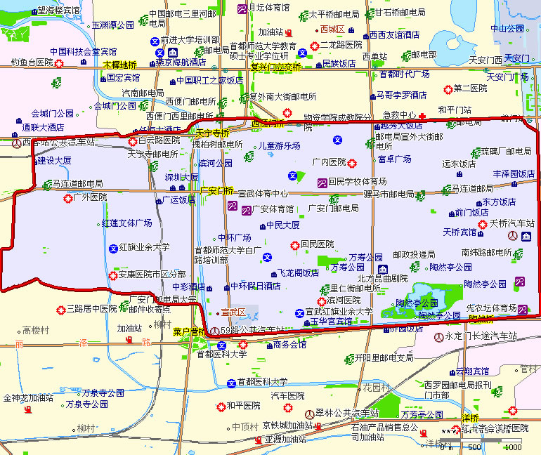 宣武區(qū)轄8個(gè)街道:大柵欄街道、天橋街道、椿樹(shù)街道、陶然亭街道、廣安門(mén)內(nèi)街道、牛街街道、白紙坊街道、廣安門(mén)外街道。