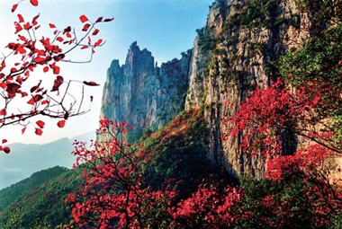 景區(qū)內(nèi)有集中連片紅葉6700公頃,有以黃櫨、烏桕、楓樹和桐樹為主的200個(gè)品種。紅葉植物主要生長在樹木少、土質(zhì)薄的地方,具有耐寒、耐干旱的特性,早晚溫差越大,天氣越冷紅葉越紅。深秋時(shí)節(jié),廣袤的群山峽谷中,70%的山體上都被成片的紅色覆蓋,與碧綠的峽江水交相輝映。