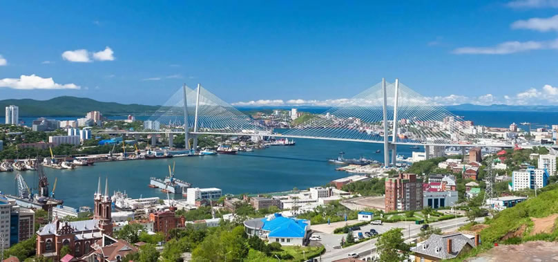 符拉迪沃斯托克 符拉迪沃斯托克是遠東聯(lián)邦區(qū)行政中心,人口約60.5萬,面積331.16平方千米。位于西伯利亞大鐵路的東端終點,是俄面向亞太的窗口。俄遠東聯(lián)邦區(qū)唯一一所聯(lián)邦級大學(遠東聯(lián)邦大學)和俄科學院三個分院之一的遠東分院位于該市。目前與中國大連、延邊朝鮮族自治州、哈爾濱建立了友好城市關(guān)系。
