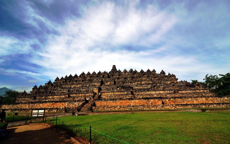 婆羅浮屠寺廟群 婆羅浮屠位于東南亞的印度尼西亞,大約建于公元750年至850年間,由當(dāng)時(shí)統(tǒng)治爪哇島的夏連特拉王朝統(tǒng)治者興建。“婆羅浮屠”這個(gè)名字的意思很可能來(lái)自梵語(yǔ)"Vihara Buddha Ur",意思就是“山頂?shù)姆鹚?rdquo;。婆羅浮屠大約建于九世紀(jì),公元1006年因火山噴發(fā)而被埋入地下。直到806年后的1812年被英國(guó)人萊佛士發(fā)現(xiàn),婆羅浮屠得以重見天日。與中國(guó)的長(zhǎng)城、印度的泰姬陵、柬埔寨的吳哥窟并稱為古代東方四大奇跡。 婆羅浮屠是作為一整座大佛塔建造的,從上往下看它就像佛教金剛乘中的一座曼荼羅,同時(shí)代表著佛教的大千世界和心靈深處。整個(gè)建筑分為三層,基座是五個(gè)同心方臺(tái),呈角錐體;中間是三個(gè)環(huán)形平臺(tái),呈圓錐體;頂端是佛塔。四周圍墻和欄桿飾以淺浮雕,總面積2500平方米;圍繞著環(huán)形平臺(tái)有72座透雕細(xì)工的印度塔,內(nèi)有佛龕,每個(gè)佛龕供奉一尊佛像。婆羅浮屠寺廟群在聯(lián)合國(guó)的援助下于1970年得以重建,現(xiàn)已經(jīng)成為印度尼西亞最著名的景點(diǎn)之一。