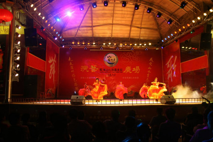 占地1600平米的全新“演藝廣場”可同時容納上千名觀眾觀看精彩的文藝表演,演員和觀眾還可以現(xiàn)場互動、參與。舞臺采用價值數(shù)百萬的立體音響設(shè)備,裝飾流光溢彩的燈光效果,彰顯藝術(shù)大舞臺的魅力。數(shù)十名技藝精湛的演員輪流作民間雜技、歌舞、特技、絕技等全天候表演,精彩不斷,亮點(diǎn)紛呈。游客可在觀賞具有獨(dú)特中國鄉(xiāng)土風(fēng)情的文藝節(jié)目的同時,參與體驗民間鄉(xiāng)土文藝演出的神奇魅力。此外,觀瀾演藝廣場2樓還設(shè)置裝修豪華、座位舒適、服務(wù)完美的10間卡啦Ok包房,為VIP客人提供人性化演藝服務(wù)。