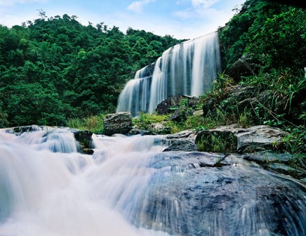 黃滿寨瀑布群旅游區(qū)是國(guó)家4A級(jí)旅游景區(qū),位于廣東省揭陽(yáng)市揭西縣。黃滿寨瀑布群旅游區(qū)自上而下共分五級(jí):一級(jí)是寬82米、落差56米的飛虹瀑布,三股水流分別從頂端飛懸而下,盛水時(shí)節(jié),更是連成一片,形若貴州黃果樹(shù)瀑布。繼續(xù)向前,下行約百米又形成銀河崆瀑布,飛瀑撞擊巖石。沿水往下是落差約120米的落九天瀑布,兩邊巖石高起。在下游是三疊谷瀑布,水流在三個(gè)落差各6米的斷崖處唱陽(yáng)關(guān)三疊,三個(gè)瀑布錯(cuò)角相連。最下為第五級(jí)瀑布斗方崆瀑布。黃滿寨瀑布群景區(qū)所在的山谷比較幽深,山間林木茂盛,瀑布群鑲嵌在深山峽谷中。