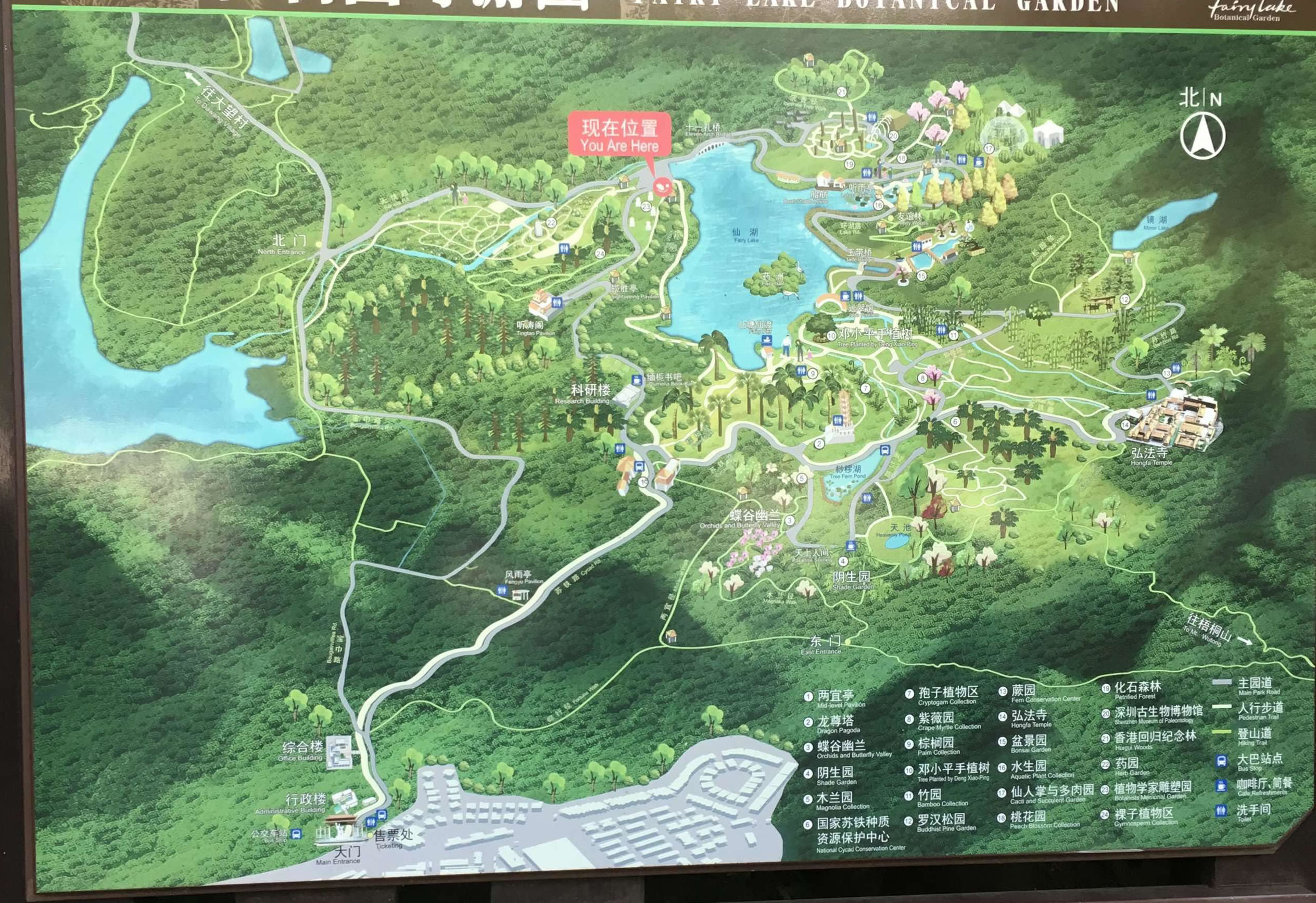 仙湖植物園共保存植物約8000種,建有蘇鐵保存中心、木蘭園、珍稀樹(shù)木園、棕櫚園、竹區(qū)、蔭生植物區(qū)、沙漠植物區(qū)、百果園、水生植物園、桃花園、裸子植物區(qū)、盆景園等21個(gè)植物專類園。
