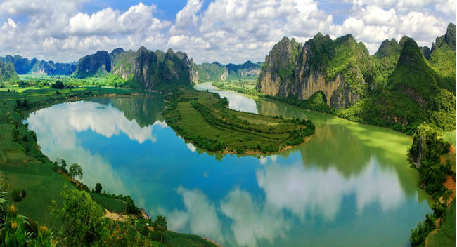 地形地貌 龍州縣境內(nèi)地勢南北較高,中部水口河——麗江——左江橫貫全境,形成低平的河谷平原。江北以巖溶地貌(俗稱石山)為主,主要有峰叢洼地、峰叢谷地和峰林谷地,走向大致為北西——南東向,海拔高度多為500~700米;江南主要是土山和巖溶地貌:土山是大青山山脈,走向北北西——南南東向, 主峰海拔1045米,巖溶地貌以峰林谷地為主,海拔高度多在500米以下,分布比較零散。