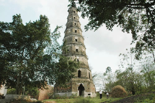 貴港市城東五里的羅泊灣,形如蘿卜,因而原名蘿卜灣。灣上有一座巍峨古塔,名曰安瀾,又曰漪瀾,塔高九層約30多米,底層周長36.62米,墻厚1.9米,塔身呈八角形,共有35個形狀不同的窗口,坐南向北臨江而立,建筑風格非常獨特。此塔建于清嘉慶二十三年(1818),已經有200多年。昔日登塔可望江城,江中百舸爭流,浪擊飛舟,城上高樓林立,車水馬龍,人來人往,無限風光在塔峰。此塔遭受過無數次特大洪水的沖撞和雷電轟擊,仍巋然不動,穩(wěn)如泰山,塔頂的瓦片不掉落,塔身沒有毀損,保留全貌。