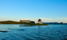 九凌湖位于覃塘區(qū)石卡鎮(zhèn)西面,始建于上世紀五十年代。距市區(qū)約14千米,湖總容量1850萬立方米,有效容量1282萬立方米。水庫原為九口長年不竭的流泉匯聚成一條小河,故稱九凌;在九凌東面約半華里處又有五泉匯人,共十四凌,但人們還是喜歡久久長長,仍取其名為九凌。湖建成后,水面面積9999畝,平均水深2.12米。湖水冬暖夏涼,年平均溫度在16—20~C之間,既宜游泳,又宜蕩舟。湖中還有占地近1畝的湖心島,島上建有“九龍亭”,這是別具匠心的構建。