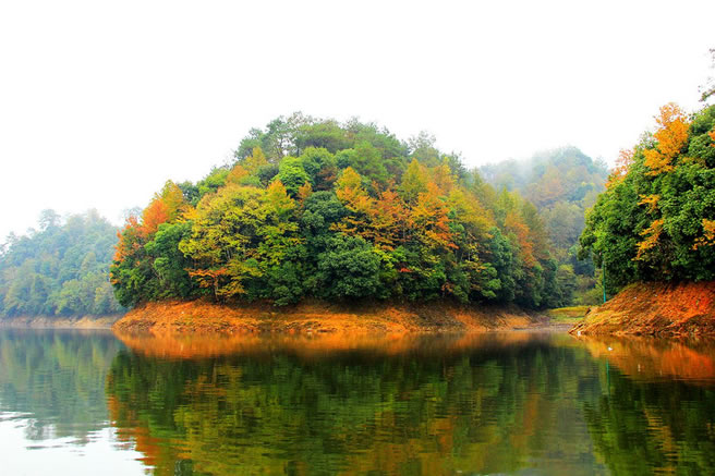 鴛鴦湖,位于縣城東部約1.5千米的鳳凰山腳下,是兩口并排、相隔30多米的大水潭。右潭水清澈如鏡,水中游魚歷歷可數(shù);左潭水色渾濁,略呈黃色。當(dāng)?shù)厝嚎偡Q水色清澈的右潭為母塘,水色渾濁的左潭為公潭,俗稱“公母塘”。兩塘的水均從鳳凰山腳下涌出。