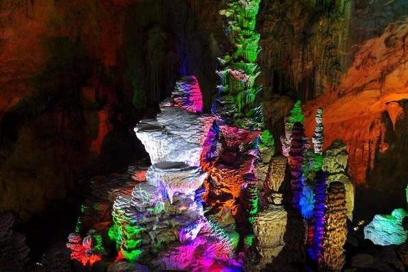 鴛鴦洞,位于縣城東面,鳳凰山腰,海拔700余米,為云貴高原南緣巖溶中高位雙層溶洞,洞中石柱、石筍、石幔琳瑯滿目。洞口高7.5m,寬12m。洞長480米,最寬處320米,巖廳最高點52米,面積為2.5萬平方米,洞內(nèi)大廳規(guī)模宏大。從洞口進(jìn)入便是第一層洞,游程迂回全長1200米,洞中乳石崢嶸,石筍高達(dá)36.4m,象擎天巨柱直插天空,20m以上高度的石筍約15個,6m左右高度的石筍更是不計其數(shù),在多處聚集形成了奇特的洞中石林景觀。洞內(nèi)最大的石幔高約15m,寬6m,顏色潔白,酷似瀑布。
