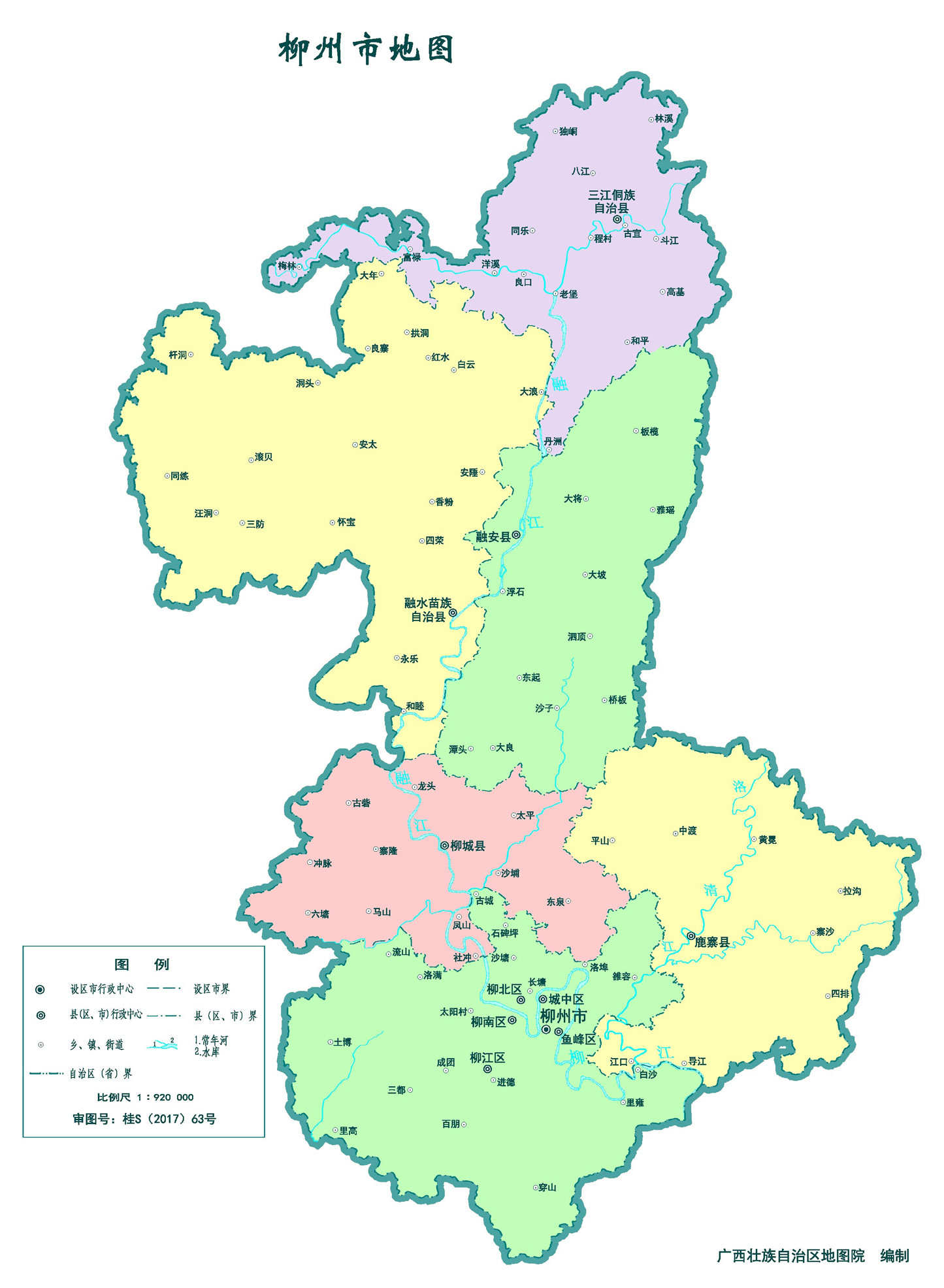 柳州市轄5個(gè)市轄區(qū)、3個(gè)縣、2個(gè)自治縣: