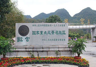 距龍宮上游8公里處。景區(qū)為人工湖泊,湖內(nèi)山光水色,島嶼相連,奇峰林立。水面開闊,可供水上娛樂觀光。
