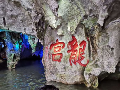 龍宮水溶洞長達(dá)15公里,為國內(nèi)之冠。景區(qū)對外開放了二段,長1260米,洞內(nèi)鐘乳千姿百態(tài),與北方溶洞相比更顯細(xì)致與精巧,與南方溶洞相比更顯神秘與奇特,其洞廳構(gòu)造宛如神話中的龍王宮殿!暗叵吕旖⑻焐鲜帧钡娜芏达L(fēng)景價(jià)值,是目前國內(nèi)已發(fā)現(xiàn)的其它同類型景區(qū)中無以比擬的,大詩人艾青稱“大自然的大奇跡”,國畫大師劉海粟譽(yù)“天下奇觀”,全國溶洞專家感嘆“覽龍宮知天下水洞,蕩輕舟臨人間仙境”!吧讲辉诟,有仙則名,水不在深,有龍則靈”,龍宮就是這樣的人間天堂。
