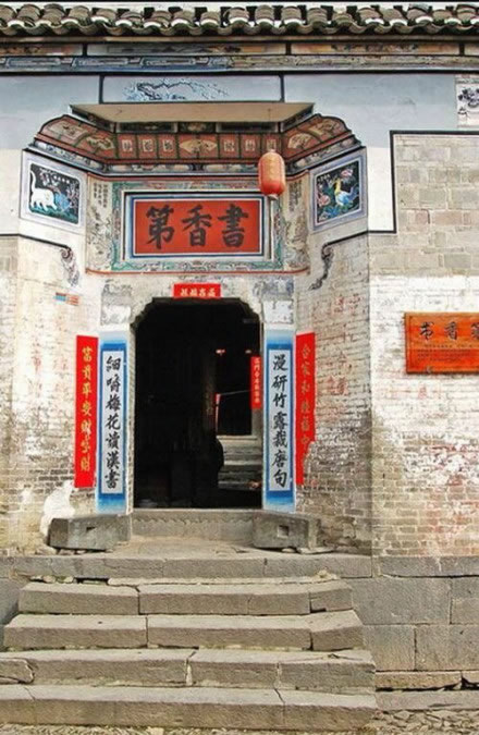 書香第位于南門大街,建于清末,書香弟意取文化之家,讀書之族,以知書識(shí)禮為立家之本。三間三進(jìn)二天井,雙重檐出水,堂屋窗格為各式花窗,門前放有一對(duì)石鎖,鏨刻有“連中三元”、“連升三級(jí)”字樣,防火缸鐫刻有古代兵器戟等,作為練武人家的象征,大門門板用堅(jiān)硬的木材青杠做成,十分牢固,門后地面安有青石鑿成的頂門槽,屋角備有頂門扛,供夜晚頂門使用,是隆里的典型民居。