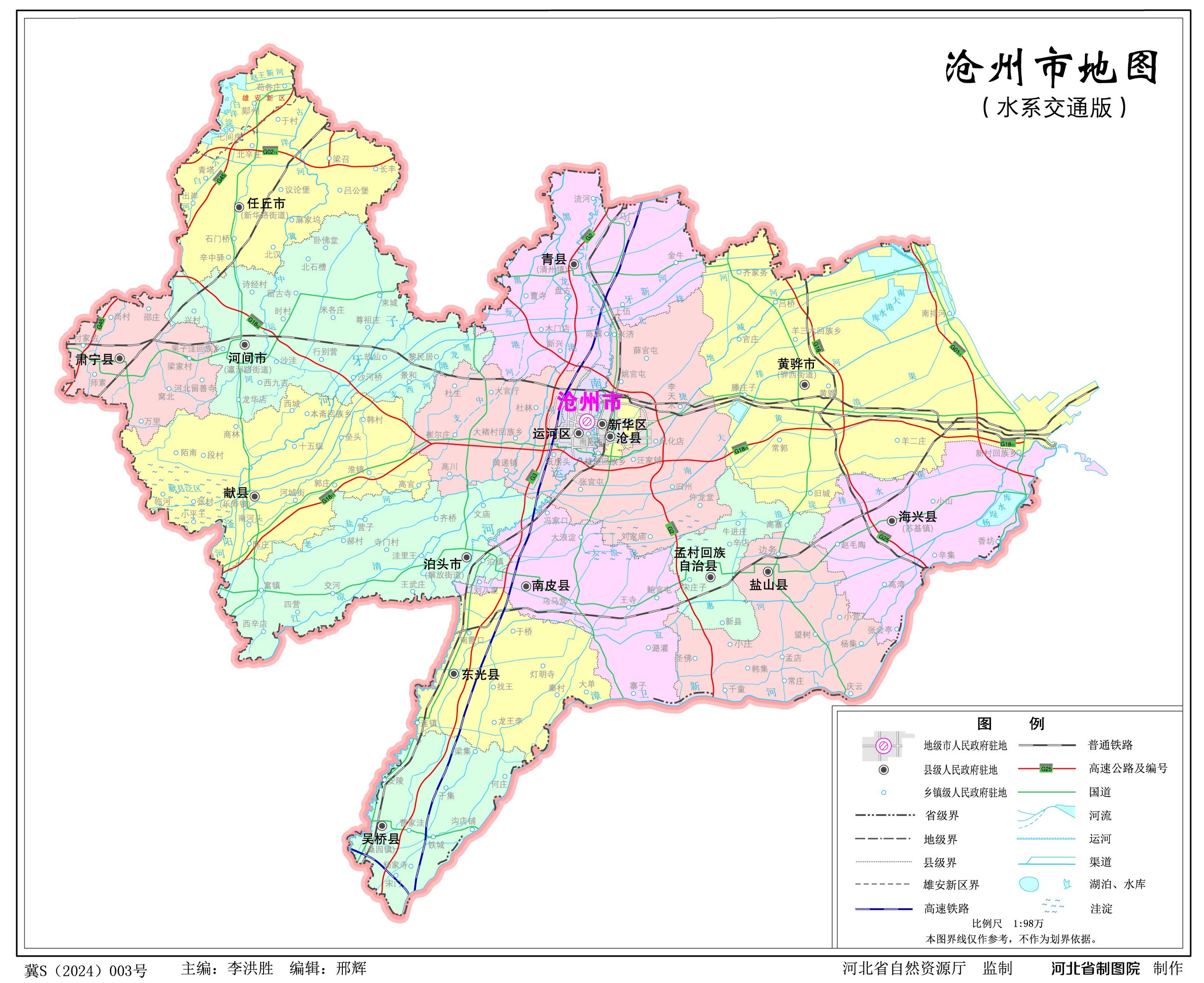 滄州市轄2個(gè)市轄區(qū)、9個(gè)縣、1個(gè)自治縣,代管4個(gè)縣級(jí)市: