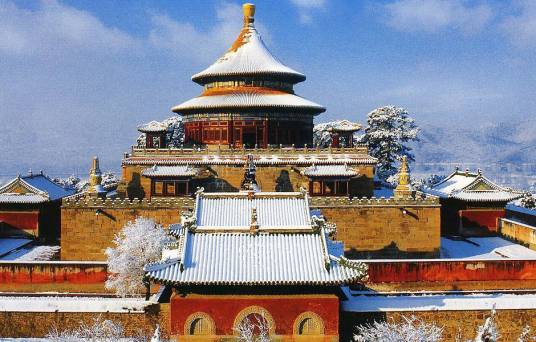 避暑山莊周圍的喇嘛教寺廟群是依照西藏、新疆喇嘛教寺廟的形式修建的,以供邊疆少數(shù)民族的貴族朝覲皇帝時禮佛之用。共12座,其中的8座由清政府直接管理,故被稱為“外八廟” 。廟宇按照建筑風(fēng)格分為藏式、漢式和漢藏結(jié)合式三種,它們?nèi)诤狭藵h、藏等民族建筑藝的精華,氣勢宏偉,極具皇家風(fēng)范。這些風(fēng)格各異的寺廟是當(dāng)時清政府利用宗教作為籠絡(luò)手段來團(tuán)結(jié)蒙古、新疆、西藏等地區(qū)少數(shù)民族而修建的。它們多利用向陽山坡層層修建,主要殿堂聳立突出、雄偉壯觀。