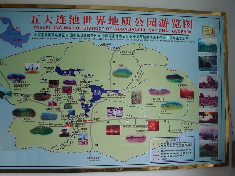 豐水期面積在21.5平方公里,最深處可達(dá)36米以上。池底是熔巖和砂底各占一半。開闊的水面倒映著14座火山,景色十分優(yōu)美。三池子的傳說多,景觀也最多,夏季“群山倒影”,冬天“三池冰斷”。湖泊兩岸,一面是壯觀的新期火山熔巖臺地,一面是古火山綠色田園風(fēng)光。 白龍湖是重要的“地質(zhì)界湖”,湖區(qū)西岸是新期火山熔巖地貌,東岸是遠(yuǎn)古泥沙巖地貌,兩岸穿越億萬年時(shí)光隧道,風(fēng)光各異,可謂是“一湖二景”。白龍湖是民間的“傳奇湖泊”:有湖怪之迷、暗河之迷、冰斷之迷、湖底金沙之迷,有黑龍白龍的傳說、蛤蜊城的故事、連池仙子的神話。