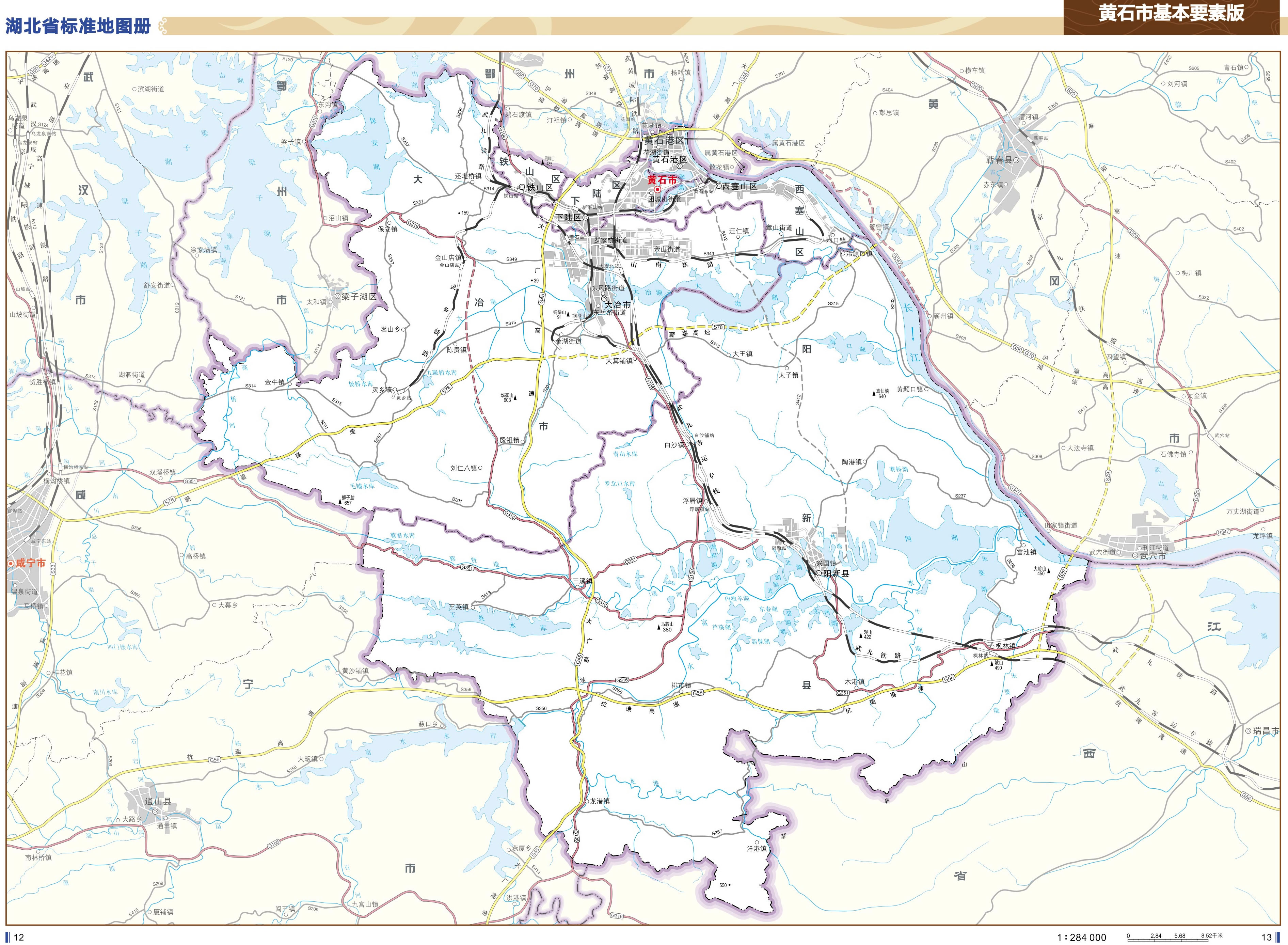 黃石市轄4個區(qū)、1個縣,代管1個縣級市: