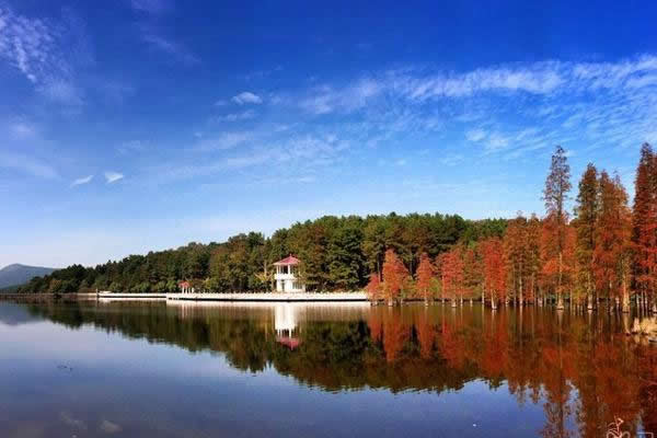 10:10知音谷林蔭小道,光影斑駁,曲徑通幽,桃李爭艷、迎春花黃,爛漫花事,溪流潺潺。瀏撫琴石,子期草廬,試斧石,山人居,聆聽“高山流水遇知音”的唯美故事,感受千年前俞伯牙與鐘子期的真摯友情。登扶云梯,攀江漢平原第一高峰——龍霓山,鎖情臺開天下第一同心鎖。楚望亭遠眺山鄉(xiāng)田園風光。森林穿越,過九真關(guān);行琴人谷,詩竹軒看春筍破土,翠竹拔節(jié),氧浴竹海。賞當?shù)孛視。過九曲橋,徜徉山水之間。鴛鴦壩下高爾夫球場瀟灑揮桿(自費),體驗貴族運動的高雅情趣。賞連理湖美景,青山秀水,滿山含翠。檫木花開,嫩黃朵朵,猶如繁星點綴在山野之間。