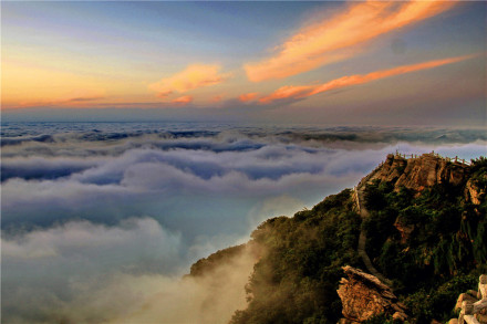 神奇的平流霧猶如仙境,十分壯觀,整個(gè)花果山在平流霧若隱若現(xiàn)宛如海市蜃樓,猶如仙境般迷人陽(yáng)光下大片云海如飄蕩的棉絮,上下翻涌,山巒被浩渺的云海淹沒(méi),汪洋一片,似海非海,把花果山的景色裹得忽隱忽現(xiàn),宛若仙境,云海將這座《西游記》中描寫(xiě)的“仙山”裝扮得格外迷人,讓游客驚嘆不已。