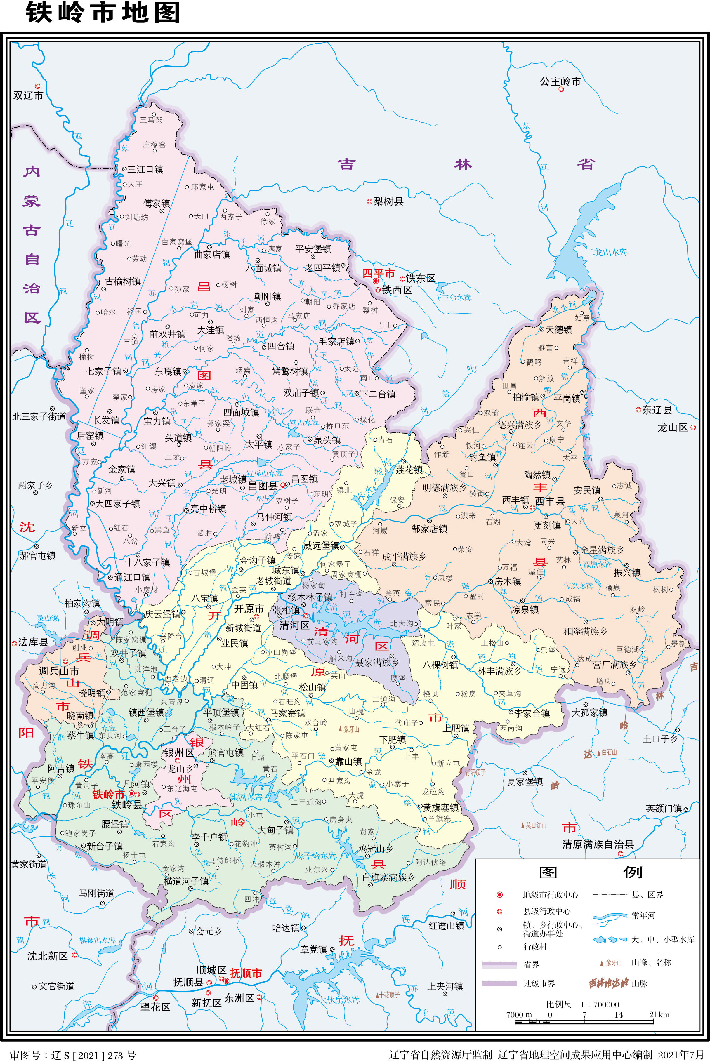 鐵嶺市轄2個(gè)市轄區(qū)、3個(gè)縣,代管2個(gè)縣級(jí)市: