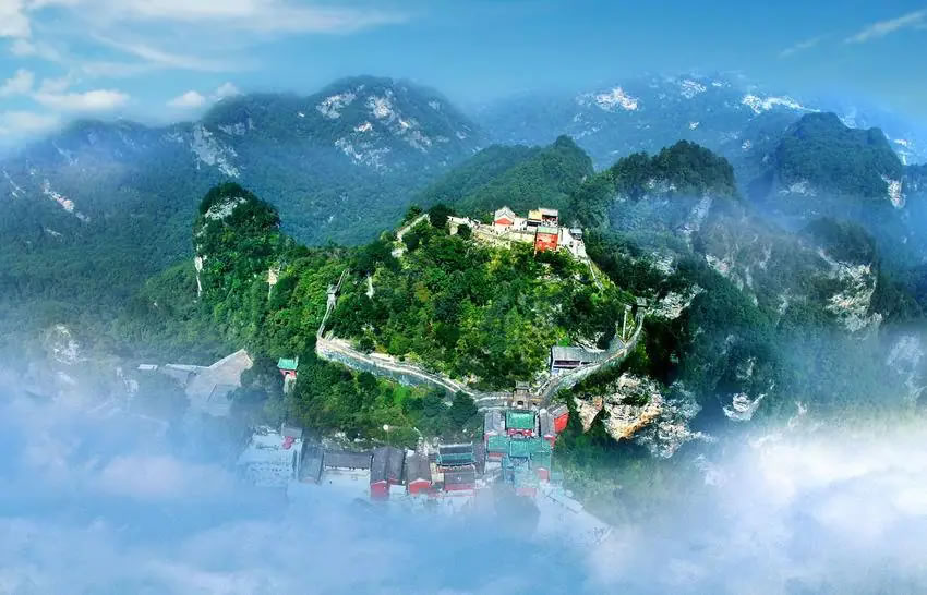 - 亮點(diǎn):懸崖峭壁上的古建筑群,龍頭香為“天下第一香”,懸空伸出2.9米,險(xiǎn)峻壯觀。