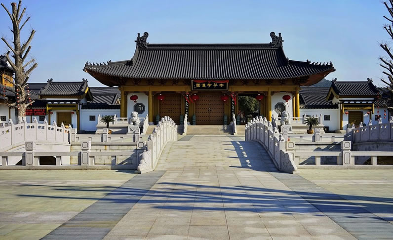 中華孝道園坐落于全國(guó)十大旅游名片之一的常州市武進(jìn)太湖灣旅游度假區(qū),占地860畝,面朝太湖,背依蓼莪山脈,位于太湖七灣中最美麗的一灣,空氣質(zhì)量等級(jí)為一 級(jí),是江南一帶的“世外桃源”。園區(qū)以距今1600多年歷史的古跡——蓼莪禪寺為依托,以弘揚(yáng)孝道精神為主旨,是融尋根祭祖、朝山禮佛、旅游觀光和覺(jué)悟教 育于一體的綜合景區(qū)。其主要景點(diǎn)和服務(wù)設(shè)施為蓼莪禪寺、正法明大殿、石窟觀音、妙音寶塔、先祖廟堂、中華孝道博物館、思恩廣場(chǎng)、凈心池、普光山莊等。