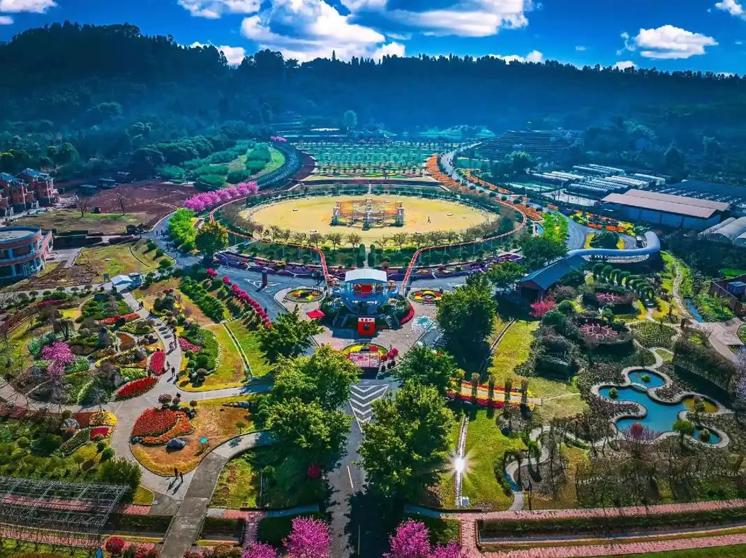 - 亮點(diǎn):800萬株杜鵑花為主,搭配玫瑰、郁金香、繡球花等,形成“云端花毯”,四季有花。
