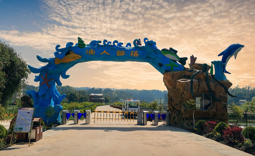 漁人部落風情園旅游景區(qū)位于達州市大竹縣廟壩鎮(zhèn)五桂村,地處大竹、達州半小時經濟圈和重慶1小時經濟圈內,占地面積約1.5平方公里。景區(qū)集生態(tài)現(xiàn)光、垂釣賽事、科普研學、親子娛樂、戶外運動、休閑度假于一體,是一處流水蜿蜒環(huán)繞、飛瀑凌空指重、亭臺依山而傍、麗景萬紫千紅、美景融合人文、山水變成畫卷的景區(qū),被廣大游客譽為“川東明珠”“酷玩樂園”“垂釣勝地”。漁人部落以休閑觀光為中心,以魚文化、養(yǎng)生娛樂為主題,建成以觀光農業(yè)為基礎、以養(yǎng)老養(yǎng)生為目標的魚文化主題突出的鄉(xiāng)村旅游亮點。已建成云中漫步、水上樂園、兒童天地、海洋沙池、彩虹王國、星空滑道、水上游船、白巖棧道、樹王亭、鳳凰觀景臺、百泉山瀑布及演繹中心舞臺等十五大游樂區(qū)域的主題親子樂園。