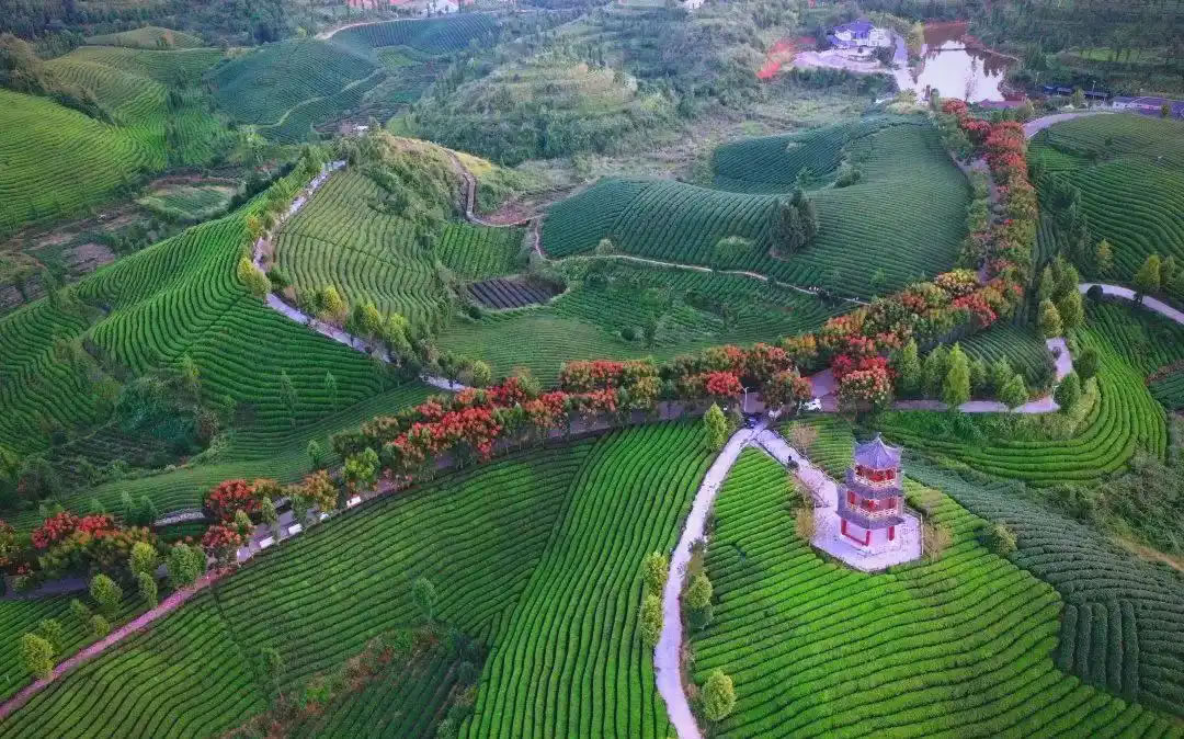 - 九堡十三彎:茶樹漫山遍野,像大地鋪了層綠毯,樹木錯(cuò)落其間,林茶相間。