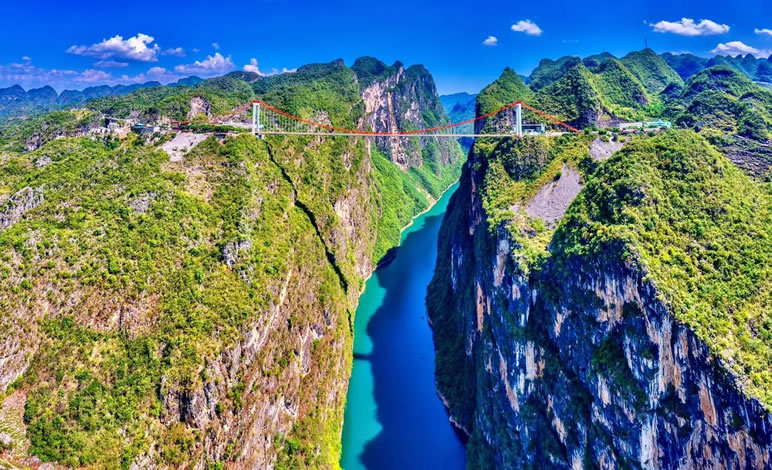 - 世界之最:橋面距江面高差280米,世界鐵路第一高橋,主跨236米居世界同類型橋梁之首。