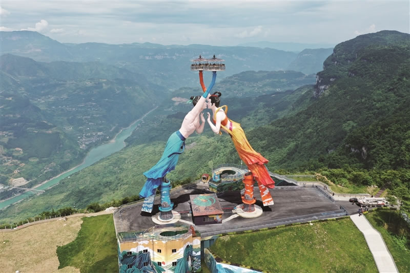 - 同心橋體驗(yàn):情侶攜手走過(guò)156米甩橋,寓意“永結(jié)同心”。