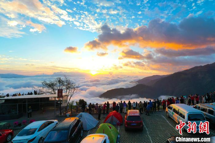 圖為秋季游客觀賞云南哀牢山云海日出景觀。刀雪鋒 攝