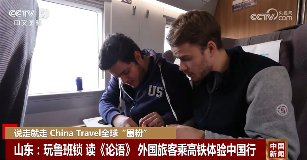 隨著過境免簽外國人在境停留時間延長為240小時等政策的實施,便捷的中國高鐵也成為了越來越多外國游客游覽中國的一種選擇。在青島開往濟南東方向的G6910次列車上,來自挪威的旅客哈蘭正興趣盎然地和來自埃及、同樣喜歡中國傳統(tǒng)建筑榫卯結(jié)構(gòu)的同伴易卜拉欣一起研究魯班鎖的玩法。