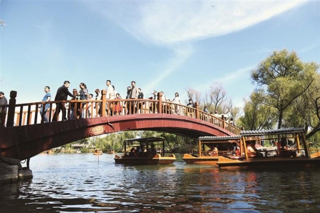 為保障游客游玩體驗(yàn),我市針對(duì)“雙節(jié)”旅游高峰,承德避暑山莊景區(qū)制定專項(xiàng)工作方案與預(yù)案,在麗正門加裝引導(dǎo)護(hù)欄保障游客有序入園,在正宮區(qū)、湖區(qū)的道路狹窄處、橋梁處增加疏導(dǎo)人員,通過(guò)監(jiān)控關(guān)注煙雨樓、金山、熱河泉等景點(diǎn)客流,人員聚集時(shí)即刻疏導(dǎo)、廣播分流;同時(shí)對(duì)一線工作人員開展服務(wù)禮儀培訓(xùn),推進(jìn)“笑臉行動(dòng)”,全面維修維護(hù)旅游服務(wù)設(shè)施、清掃環(huán)境衛(wèi)生,并調(diào)配全系統(tǒng)兩級(jí)機(jī)關(guān)人員補(bǔ)充到一線崗位,用細(xì)致服務(wù)讓游客游得舒心、玩得安心。