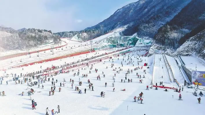 熱鬧的滑雪場現(xiàn)場。(湖北日報(bào)全媒記者 劉毅 通訊員 周瑾 攝)