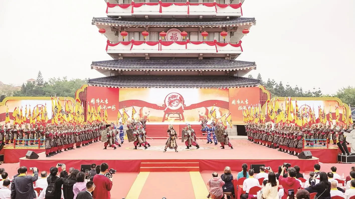 鼓聲陣陣,春日踏歌。本屆文化盛會(huì)以“開(kāi)漳大吉、根親四海”為主題,在古郡云霄、將軍山下上演連臺(tái)好戲。大型樂(lè)舞《開(kāi)漳圣王頌》氣勢(shì)恢宏,通過(guò)《忠毅·山河志》《威惠·安民賦》《和融·千秋頌》三個(gè)篇章,回望波瀾壯闊的開(kāi)漳歷史,賡續(xù)同根同源、四海歸心的文化基因;城市推介片《古郡新顏 活力云霄》融古匯今,向八方來(lái)客遞上云霄名片;本屆文化節(jié)主題曲《元光》首發(fā)首唱,以歌聲禮贊開(kāi)漳偉業(yè)、唱響美好生活。