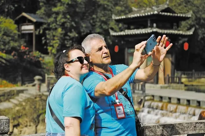 清明小長(zhǎng)假期間,外籍游客在峽江春色中感受宜昌之美。(宜昌市文旅局供圖)