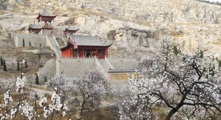 位于虎頭峰與雪山峰之間的山坳中,上植千株梨杏,人稱十里杏花村。杏花村有王林酒店、石井甘泉、問禮堂、蓮臺(tái)寺、西竺禪師墓碑等古跡。