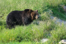 熊區(qū)是車入區(qū)的一部分。熊區(qū)模擬自然生態(tài)環(huán)境建設,設置巖石山體、池塘溝渠;種植了喬木和灌木,給棕熊和黑熊更多的自由活動的空間。