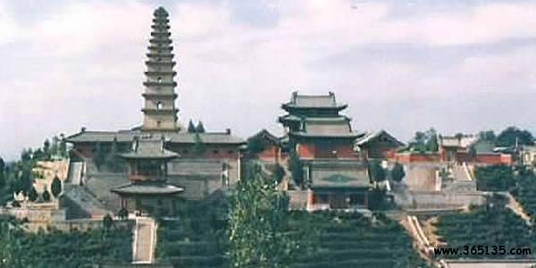 青龍山玄帝宮:位于洪洞縣城西南23公里處的青龍山,是呂梁山東南部一條支脈。海拔1147米,東臨汾河,南望天壽山,北連婁山。峰巒秀麗、蜿蜒曲折,道道山脈猶如青龍匯聚,故當(dāng)?shù)丶笆窌Q為青龍山,當(dāng)?shù)厝艘卜Q為老爺頂。青龍山頂上有建于東漢光武期間的兩千余平方米的建筑群。該建筑群采用了樓閣與碉堡相組合的宮堡形式。被譽為華北高原上的“布達拉宮”。整個建筑群以玄帝宮為主,包括大小廟宇30余座,分為前院、中院、下院和中極頂四個群體。該建筑群運用了八卦循環(huán)反復(fù)變化的原理建成的384爻地窯古洞,洞洞重疊、洞洞相連,洞中藏洞,神秘莫測,被考古和建筑界稱為奇跡。