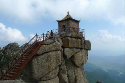 蘆芽山因形似一“蘆芽”而得名,海拔2736米,主峰絕頂約10平方米的石坪上,巍然托起一座石砌建筑——太子殿。因其位居群山之極,數(shù)十里外即可看到。