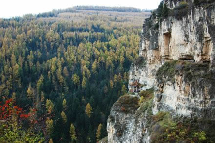 懸崖棧道位于涔山鄉(xiāng)張家崖村西的翔鳳山上,創(chuàng)建年代可上溯到唐朝貞元年間。原長42華里,一座座懸空古剎由棧道相連,驚險(xiǎn)絕倫,獨(dú)具特色,是“中國華北地區(qū)罕見的水平聯(lián)洞型棧道”,也是寧武縣古十景之一。