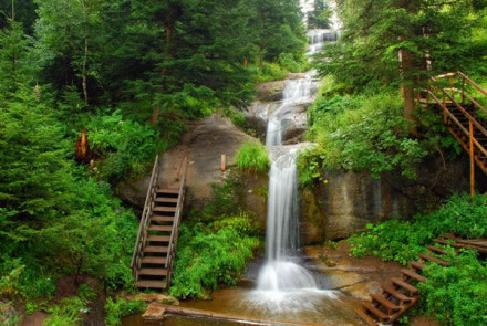九重瀑布位于寧武縣東寨鎮(zhèn)大溝村腳下,在情人谷景點(diǎn)與馬侖草原之間,距東寨鎮(zhèn)約12公里。因其地勢高峻,天藍(lán)氣清,有似入天宇之感,故名“九重瀑布”。瀑布從森林密布的山谷石崖上直瀉而下,全場300余米,落差高達(dá)55米,流量120m/s,負(fù)氧離子28000個(gè)/cm,暑期最高氣溫19°C。