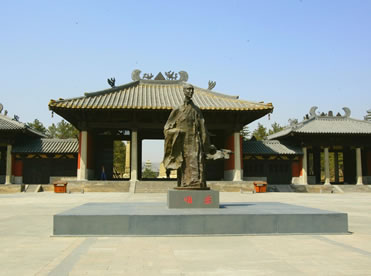 曇曜廣場(chǎng)位于云岡石窟景區(qū)入口處,占地6000多平方米,是為紀(jì)念云岡石窟的開創(chuàng)者曇曜高僧而建。整個(gè)廣場(chǎng)及亭廊建筑渲染著濃重的北魏皇家氣象,廣場(chǎng)中央的曇曜雕塑以瀟灑大器的寫意手法,塑造了一代佛門大德的藝術(shù)形象,高古清逸,似篳路藍(lán)縷,風(fēng)塵仆仆,卻是袈裟飄逸,似乎從千年前的塵埃中走來。公元460年,北魏文成帝復(fù)興佛法,命曇曜高僧主持開鑿了規(guī)模宏大的云岡石窟,因此,曇曜不僅是開鑿云岡石窟的創(chuàng)始人,也是北魏著名的佛學(xué)大師和譯經(jīng)大家,是北魏佛教昌盛的奠基人。