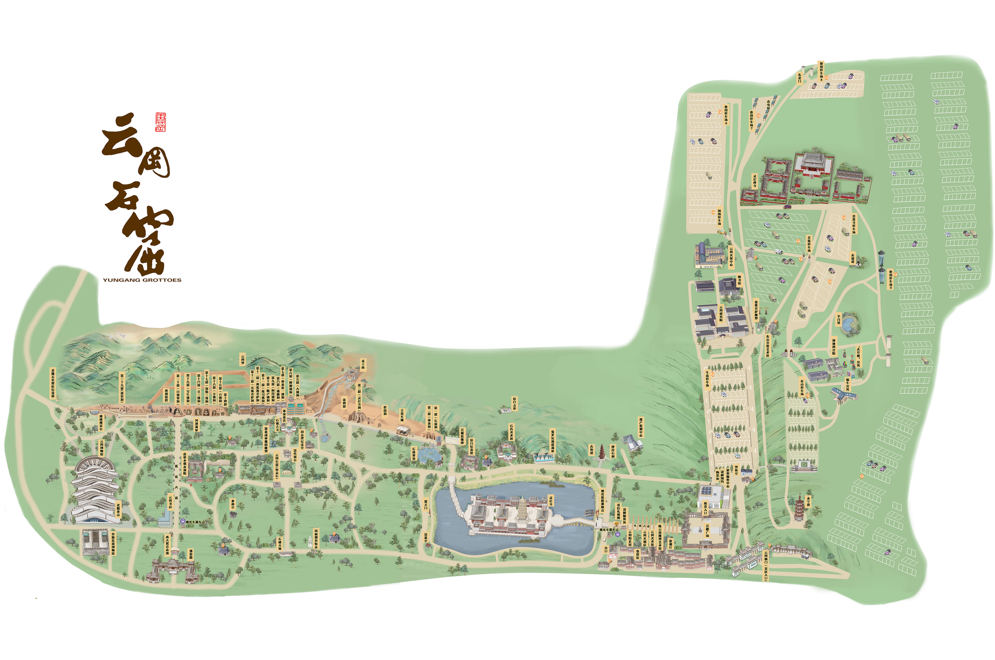 近代:1949年中華人民共和國(guó)成立,云岡石窟的主要洞窟和窟前木結(jié)構(gòu)建筑(第5、6、7窟)均保存完好。1952年設(shè)置專門保護(hù)機(jī)構(gòu),石窟文物得以妥善保護(hù),并對(duì)公眾開放。
