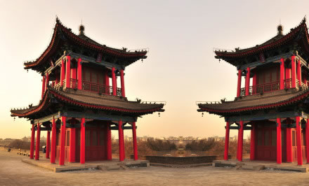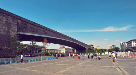 雄偉壯觀的西安城墻已成為市區(qū)最吸引人的觀光勝地之一。沿城墻外側(cè)已建成“環(huán)城公園”,成為城市居民晨練的絕佳活動(dòng)場(chǎng)所。 |