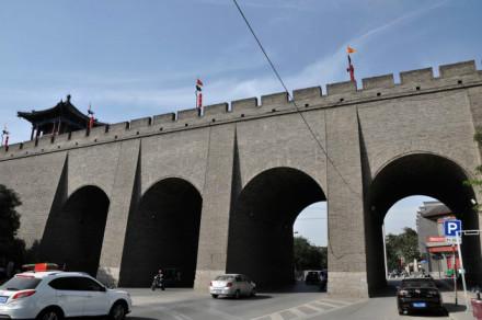 西安城墻的防御性很強(qiáng),城外的護(hù)城河為第一道防線。河上設(shè)有吊橋,是進(jìn)出的唯一通道。吊橋白天降落在護(hù)城河兩岸,供人出入。晚上吊橋升在空中,就斷絕了進(jìn)城的道路。城門(mén)外有間樓(也叫譙樓),用以打更和報(bào)警,為第二道防線。閘樓后邊是箭樓,高30余米,外面墻體筆直,箭孔密布,便于瞭望和射擊,這是第三道防線。箭樓和正樓之間是甕城,面積9348平方米,它的作用是:若敵人攻進(jìn)此處,即形成“甕中捉鱉”之勢(shì),這是第四道防線。第五道防線自然是正城門(mén)了。