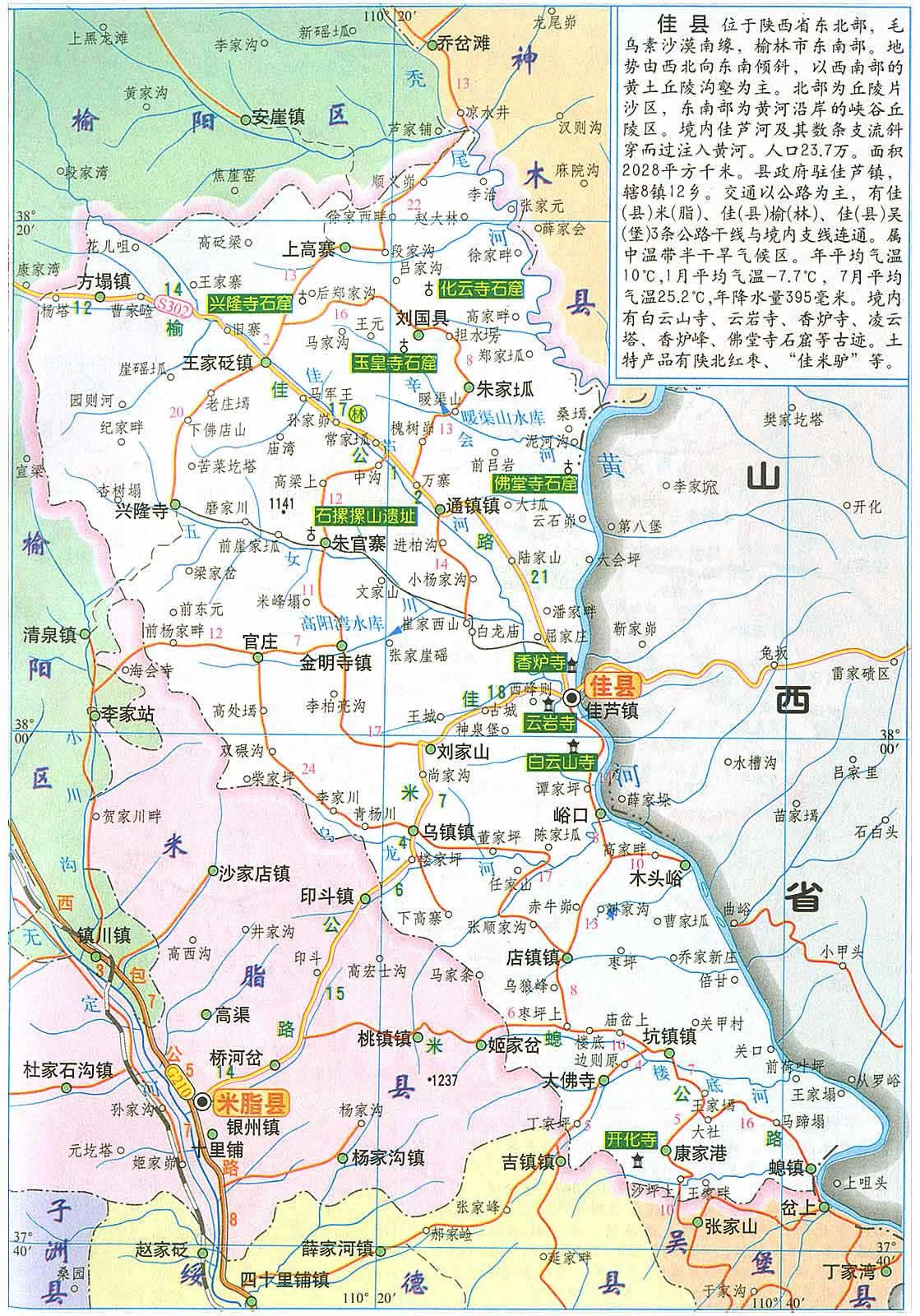 佳縣轄8個(gè)鎮(zhèn)、12個(gè)鄉(xiāng):