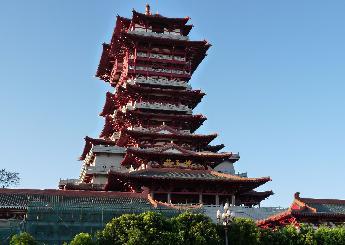 位于游仙區(qū)龜山之巔,始建于唐高宗顯慶年間(656年—661年),已有1300余年歷史,是與黃鶴樓、滕王閣、岳陽(yáng)樓齊名的唐代文化名樓之一。東望富樂(山)、西接碧水(寺)、南眺南(山)塔、北連九院(科學(xué)城),踞龜山傍涪水,攬綿州之勝于無(wú)余。歷代詩(shī)人題詠越王樓詩(shī)篇多達(dá)150余篇,其中尤以詩(shī)仙李白的《上樓詩(shī)》:“危樓高百尺,手可摘星辰,不敢高聲語(yǔ),恐驚天上人!甭劽煜。